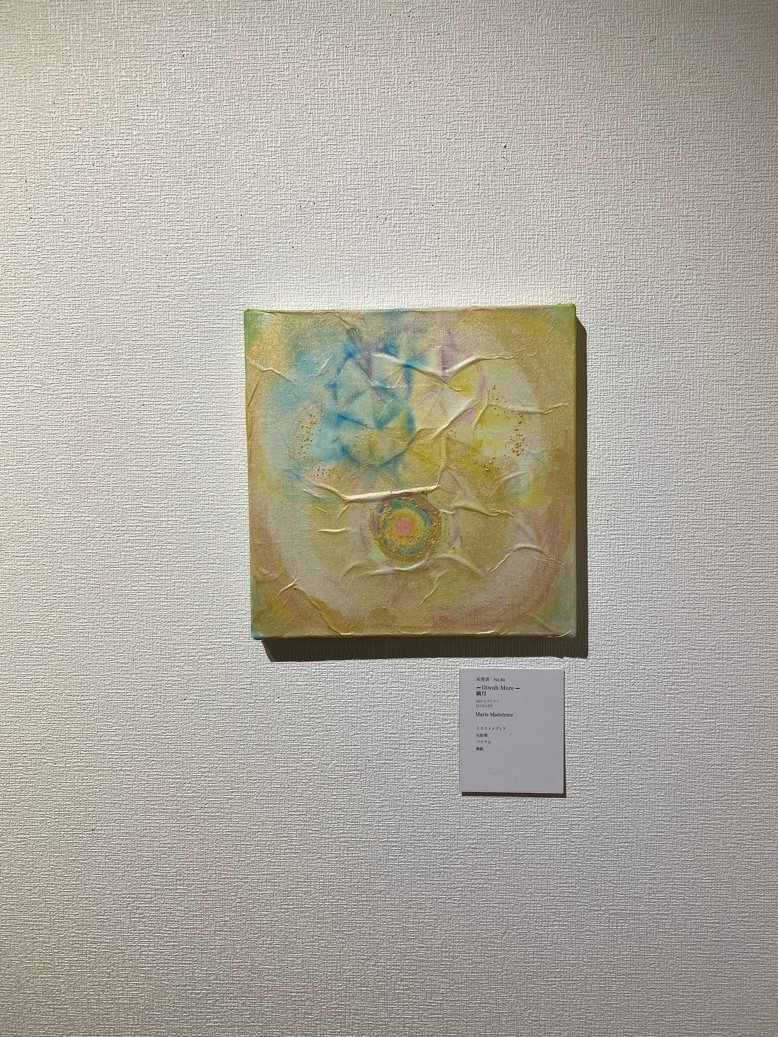 ミクストメテディア 絵具 色鉛筆 麻紙 満月の調和 月の美しさが広がる作品! この作品は、満月の穏やかさと神秘をテーマにしたアートです。色鮮やかな表現と滑らかなタッチが特徴で、見る者に心の安らぎをもたらします。神聖な光が空間に優しくじわりと浸透し、心を豊かにすることでしょう。サイズは273×273ミリで、居心地の良いリビングやオフィス、趣のあるギャラリーにぴったりです。 このアートは、すべて手作業で丁寧に仕上げられており、個性的な仕上がりが魅力です。特別な空間を彩りたい方に、唯一無二の存在感を持つ喜びを提供します。満月のエネルギーを感じることで、心の平穏と和みを得られることでしょう。 この美しいアートを通じて、月の神秘をあなたの生活空間に取り入れてみませんか?ぜひ、新作 No.80 ➖Diwali More➖ 満月をお迎えください。 #キャンバスアート #月の神秘 #手作業 #個性 #アートコレクション #心の安らぎ